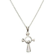 ShanOre's lovely Sterling Silver Celtic Cross with clean, elegant detail. A Claddagh emblem is featured in the Cross' center.
