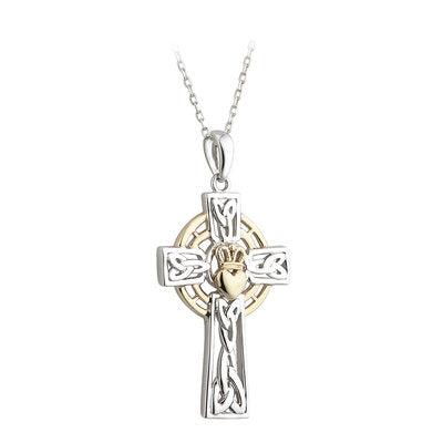 Silver & 10K Gold Claddagh Cross Pendant