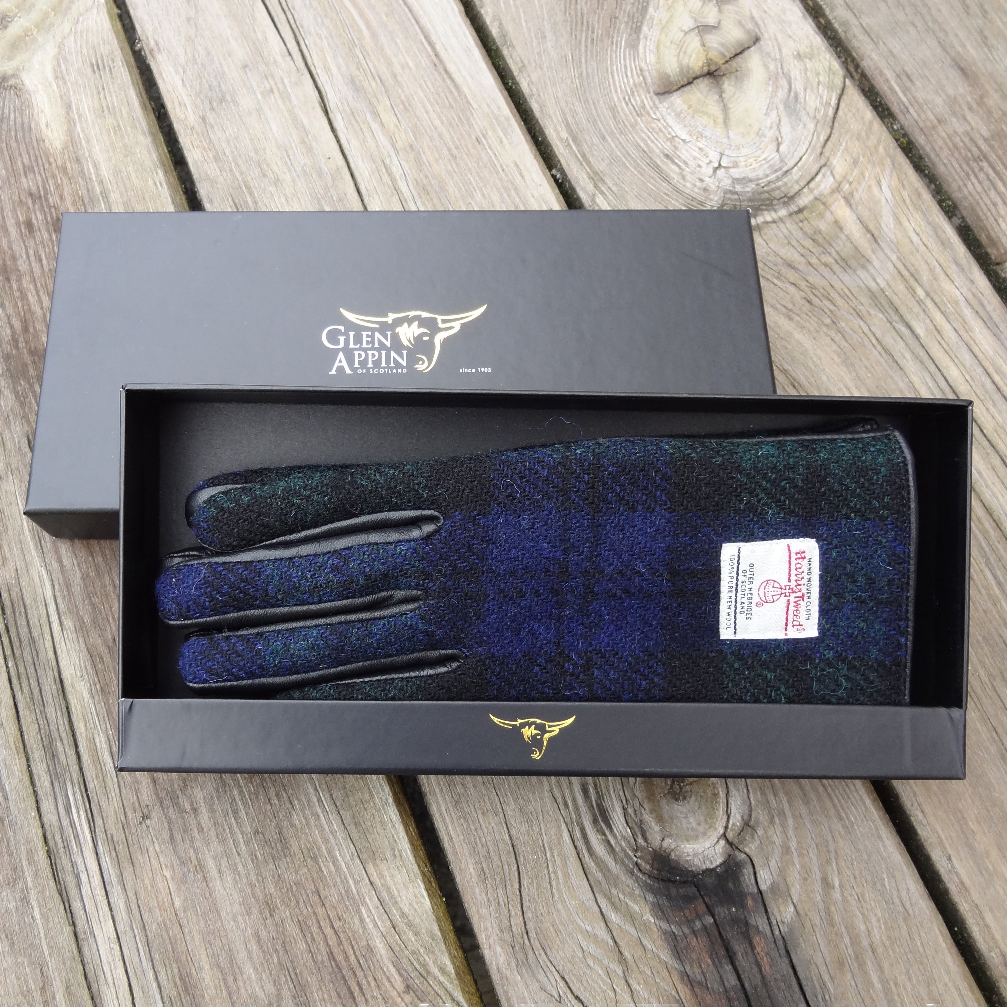 Women's Harris Tweed and Black Leather Gloves - Boxed