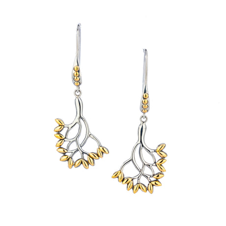 Celtic Tree of Life Earrings Sterling Silver & 18K Gold - Large