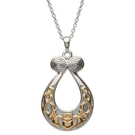 SP2047 Silver Claddagh Celtic Knot Gold Plate Necklace by Shanore