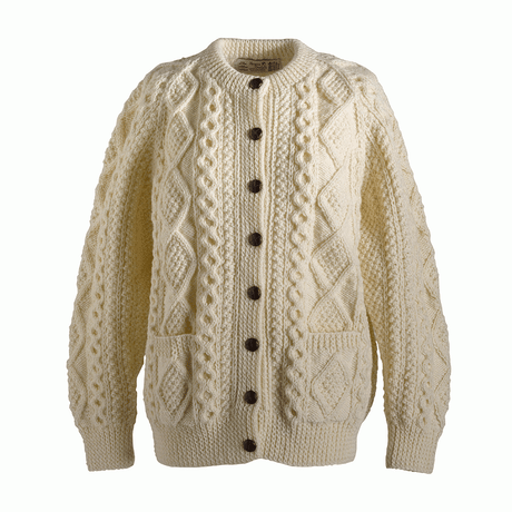 Ladies Irish Handknit Aran Crewneck Cardigan