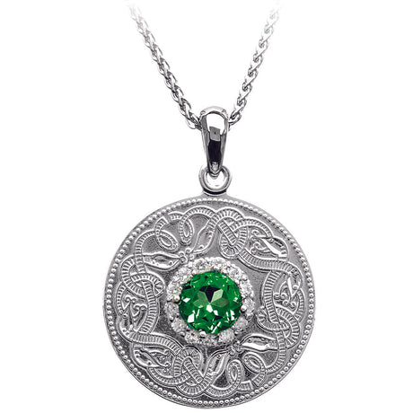 Celtic Warrior Necklace with Emerald and Clear CZ Stones - Medium