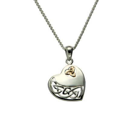 SP2045 Celtic Weave Claddagh Necklace with 14K Gold Heart by Shanore
