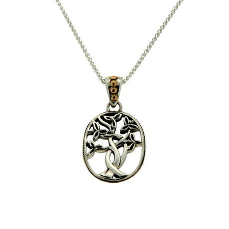 Celtic Tree of Life Round Necklace Sterling Silver & 18K Gold - Small