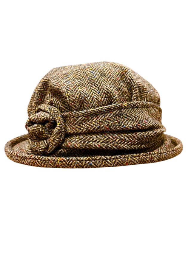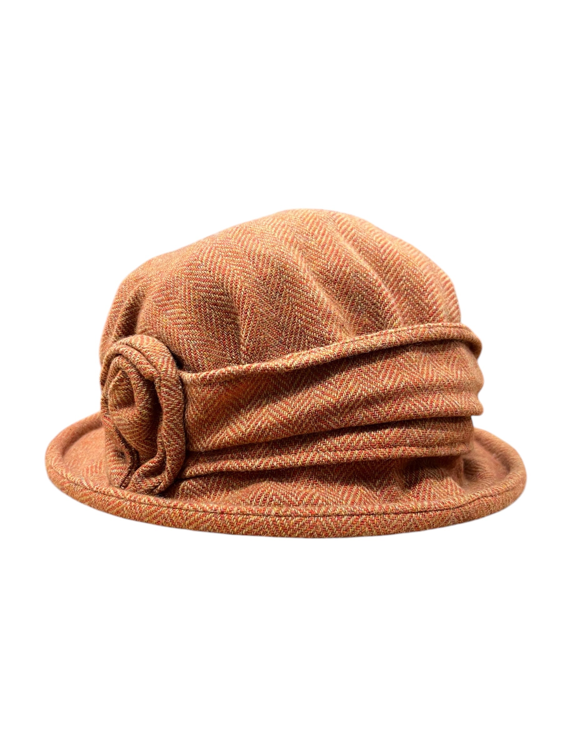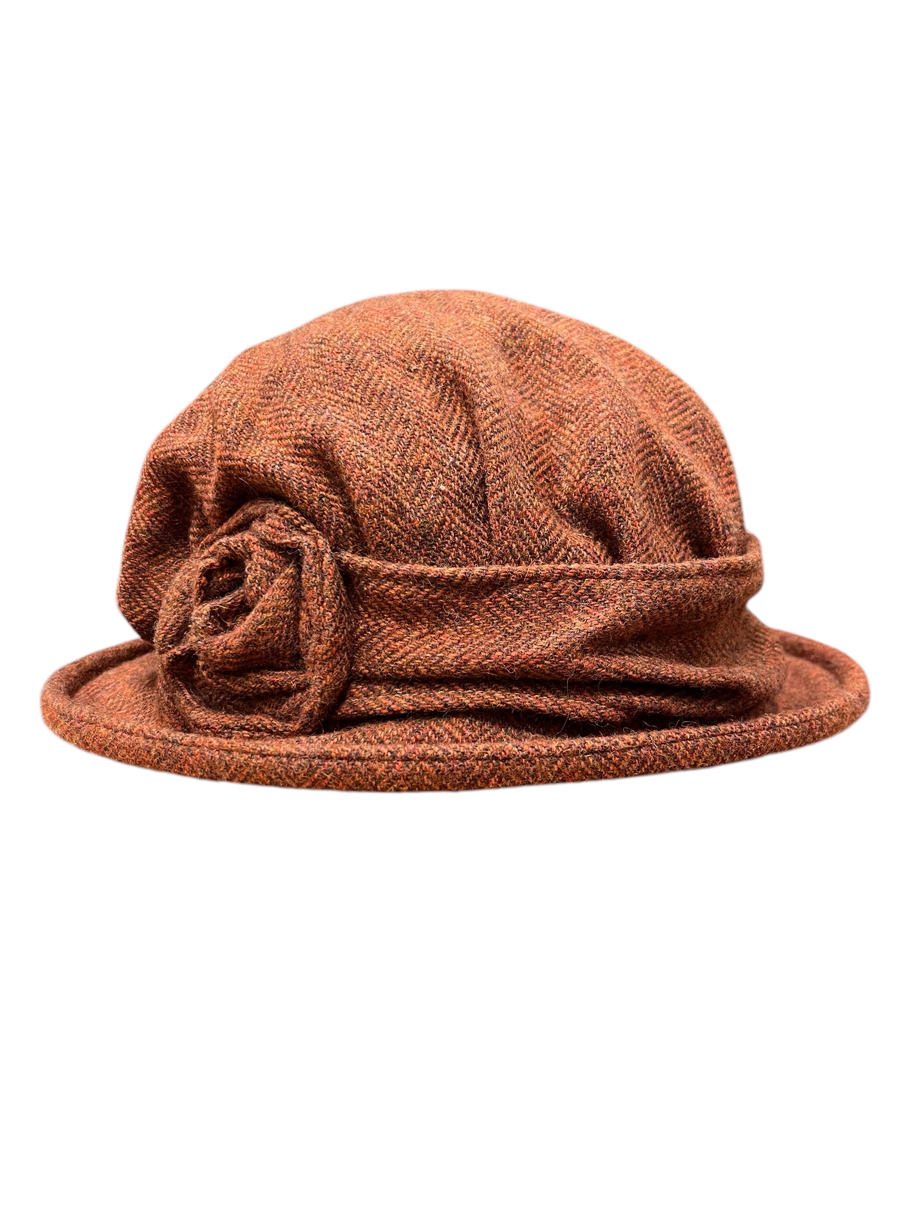 Downton Abbey Style Ladies Hat with Rose - Brown Herringbone - Downton Abbey Hat is backordered and will ship as soon as it is back in stock.