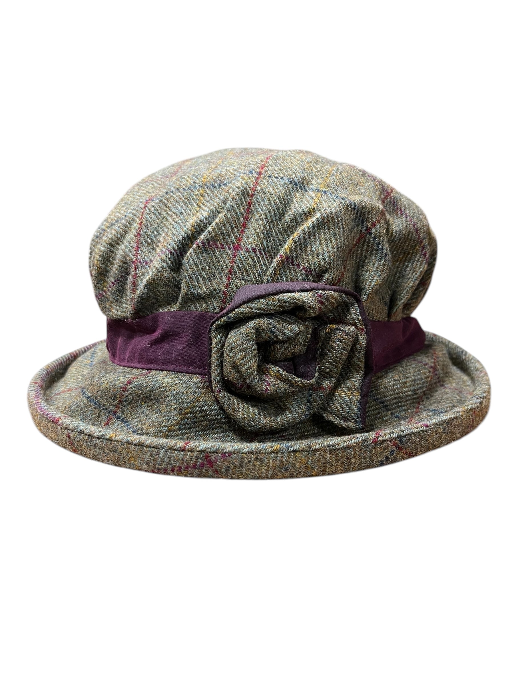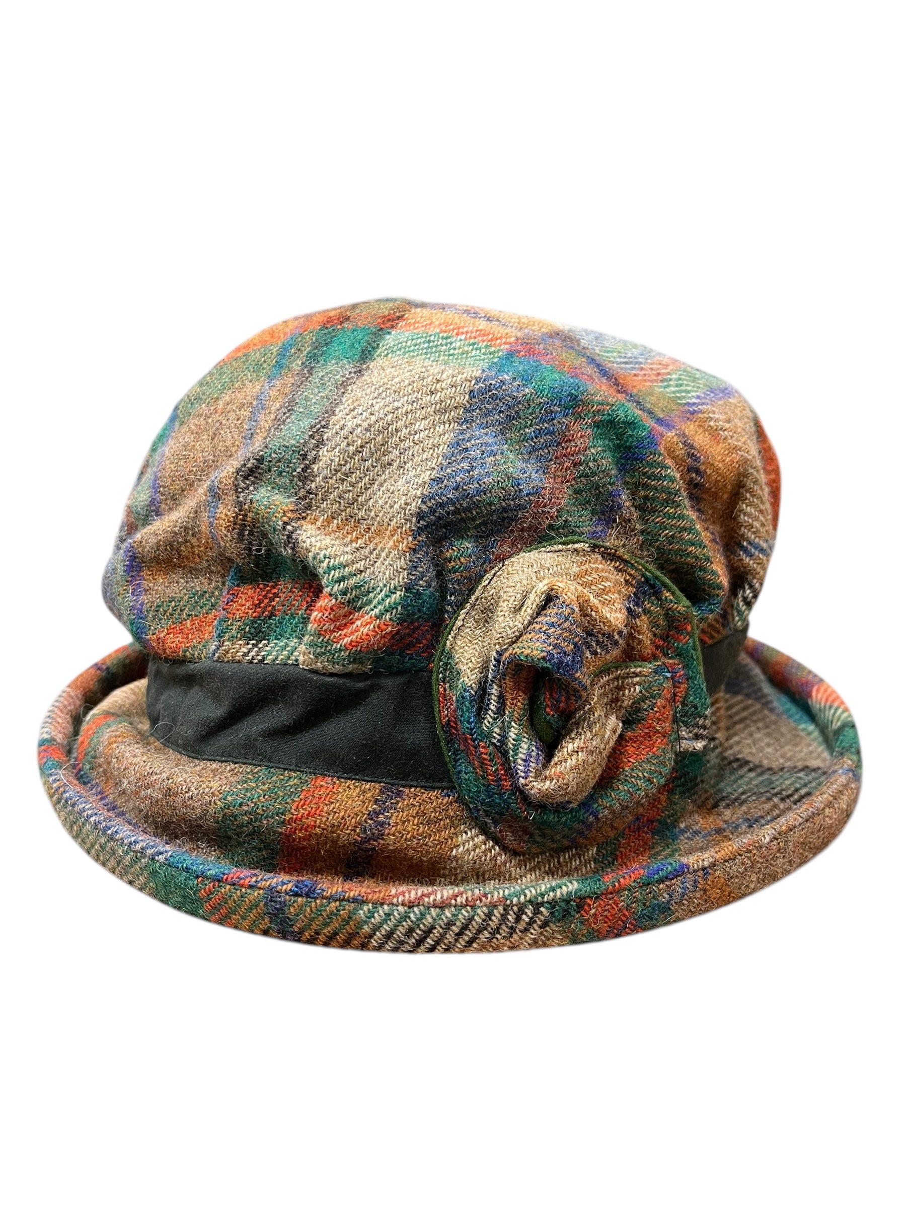 Exclusively handmade for us in Dublin by our very own milliner. Indulge in timeless elegance with our Downton Abbey Style Ladies Hat. Made with high quality tweed and plaid materials, this one size hat is perfect for any occasion. Adorned with a sophisticated tweed rose and cotton band, it's the perfect accessory for any outfit.
