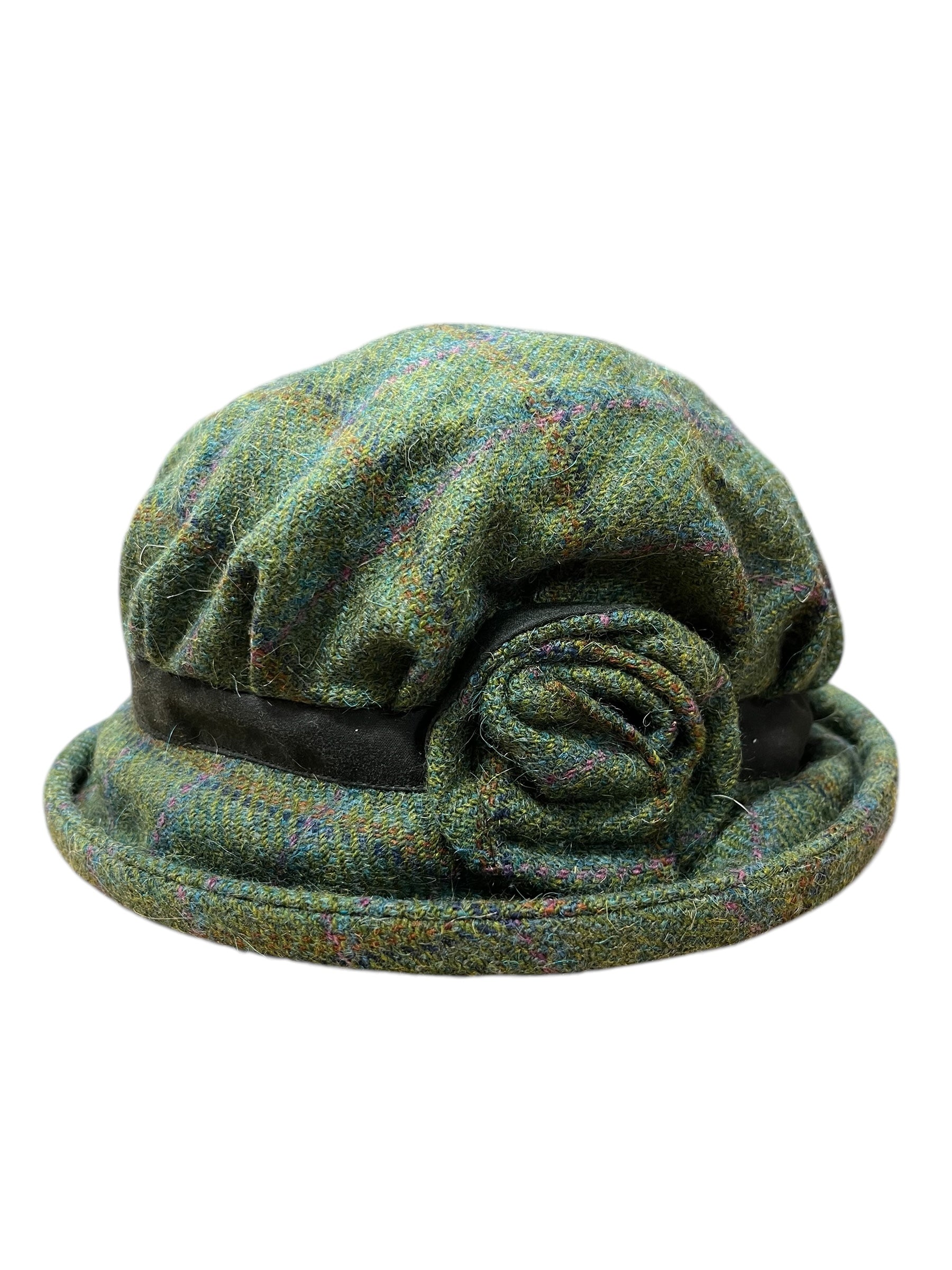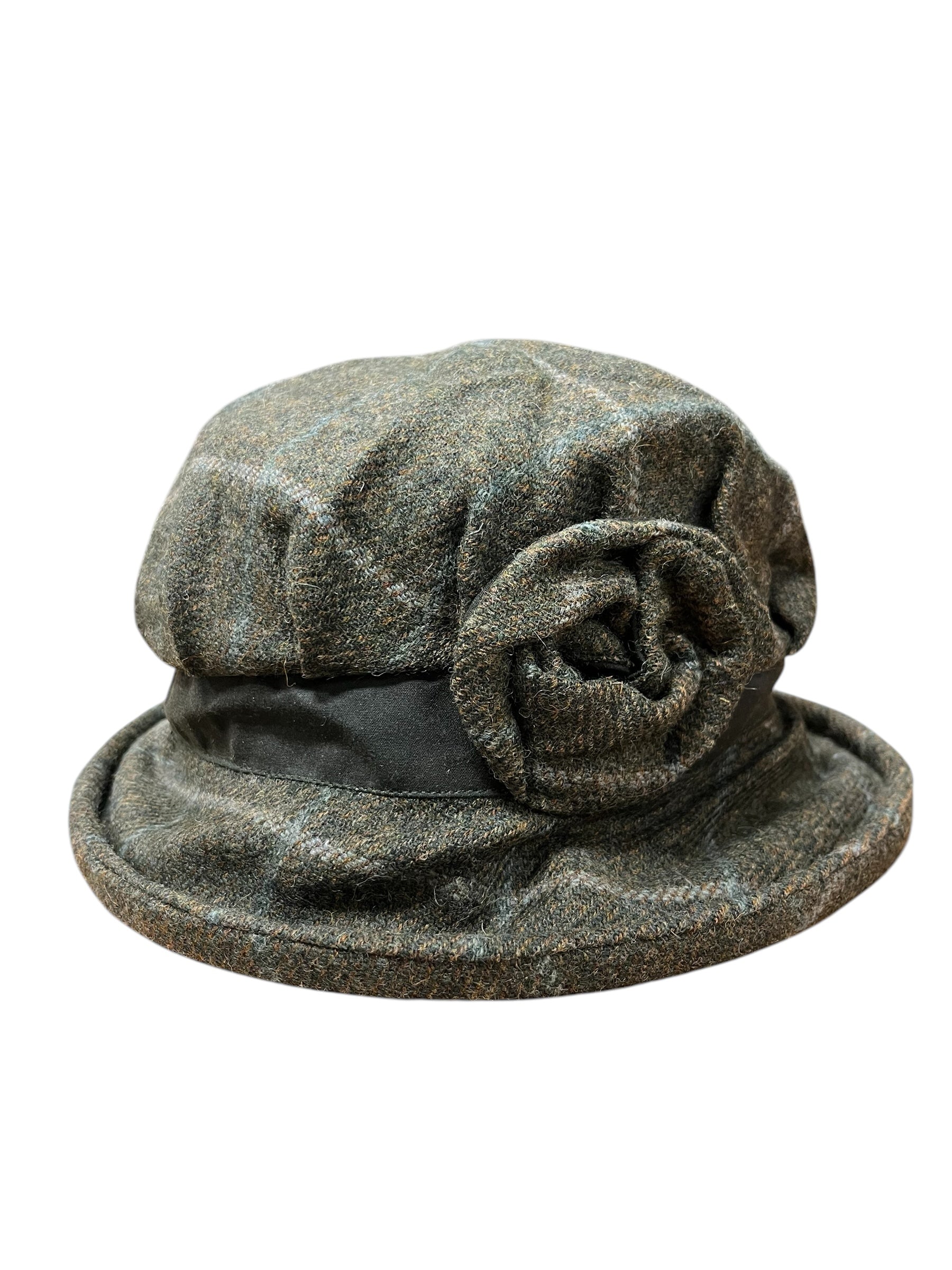 Downton Abbey Style Ladies Hat with Rose and Band - Green Tweed - Downton Abbey Hat with Rose and Band is backordered and will ship as soon as it is back in stock.