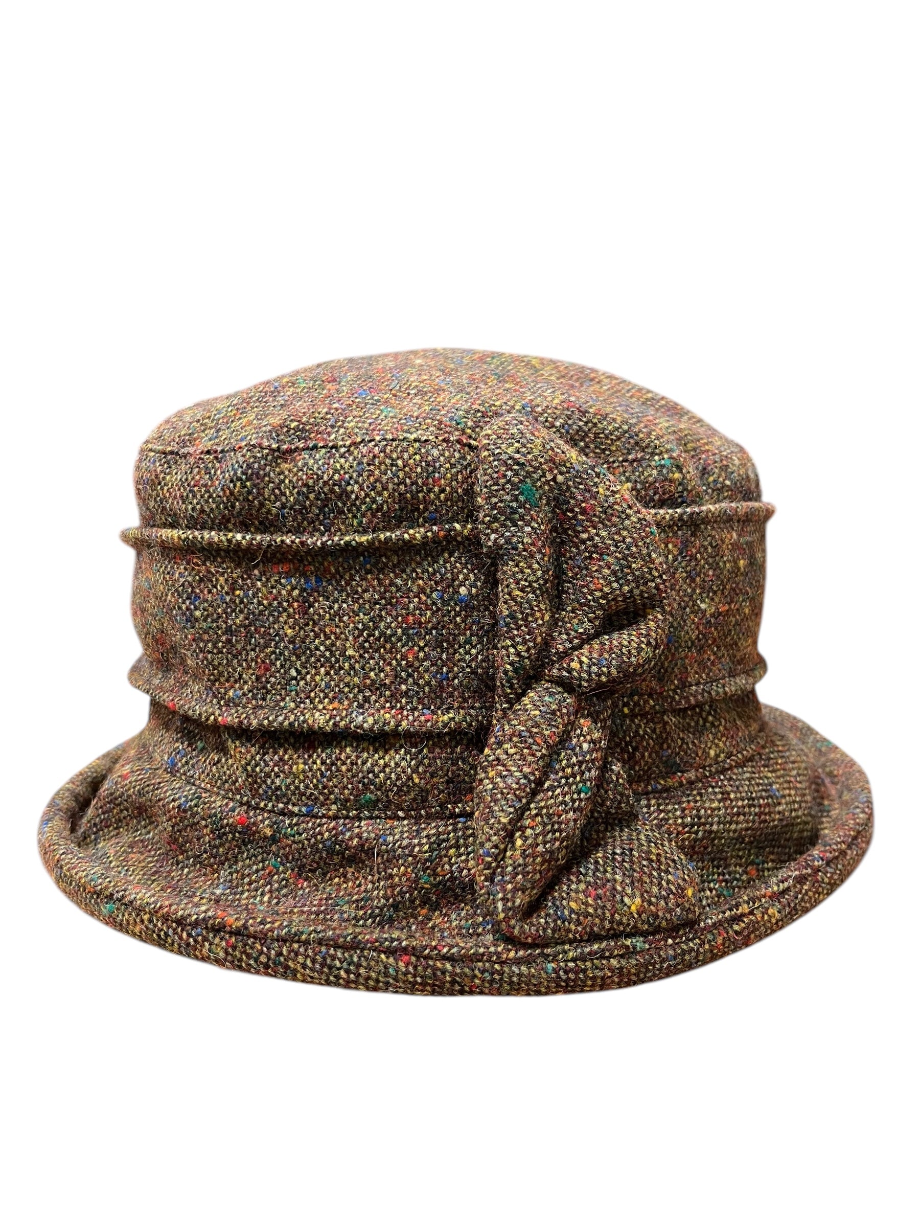 Color: Brown Fleck - Women's Narrow Brim Tweed Hat with Bow