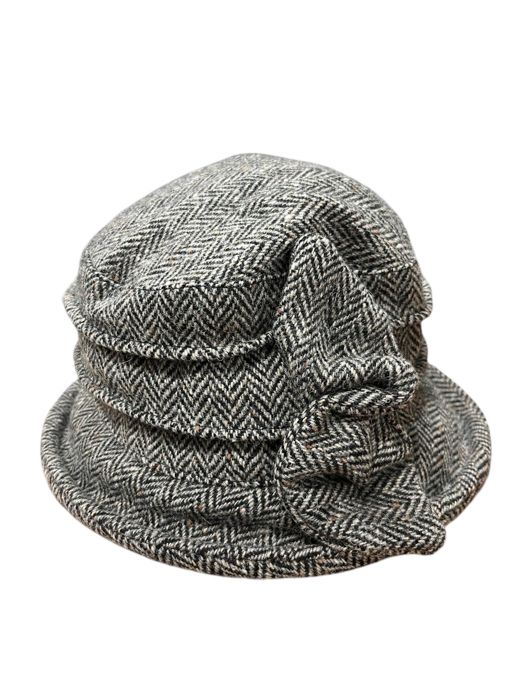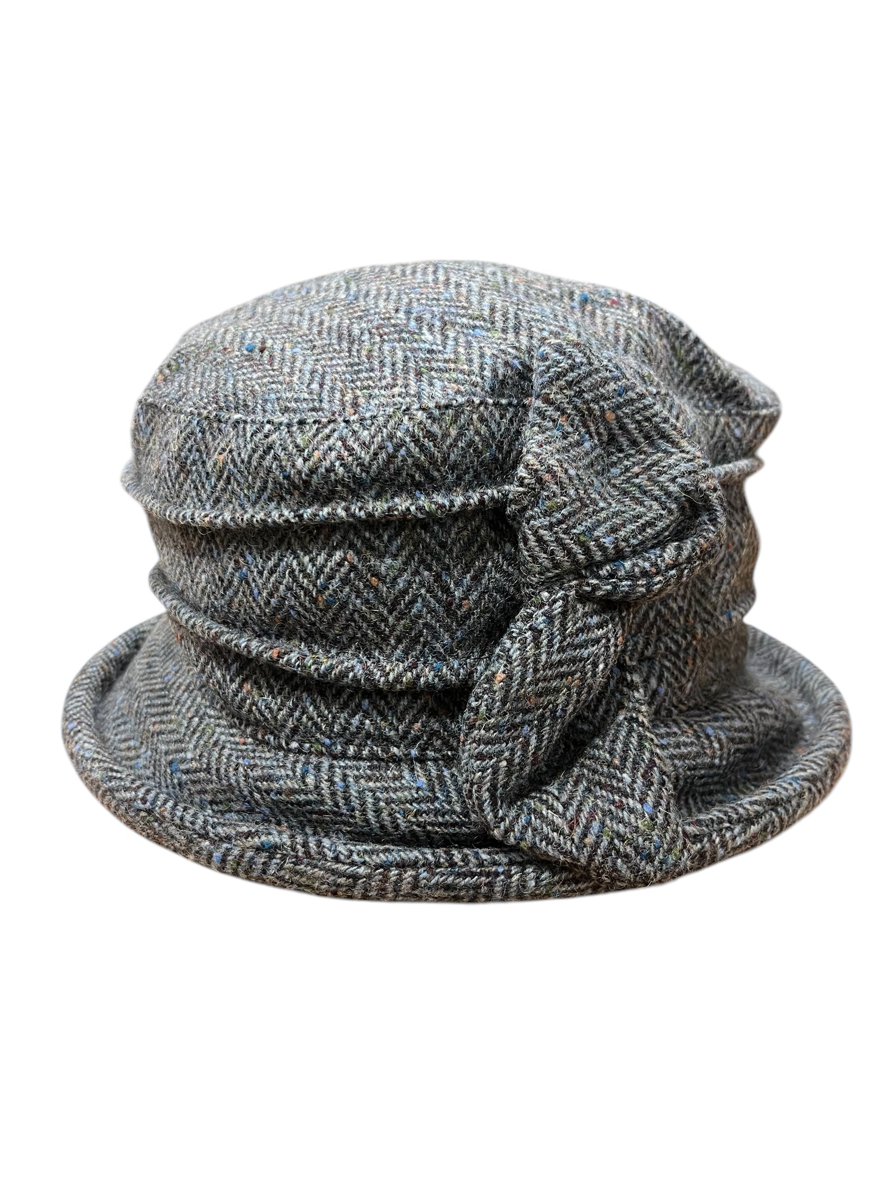 Exclusively handmade for us in Dublin by our very own milliner. Indulge in timeless elegance with our Waxed Cotton Downton Abbey Style Ladies Hat. Made with high quality  tweed, this one size hat is perfect for any occasion. Adorned with a sophisticated tweed bow, it's the perfect accessory for any outfit.