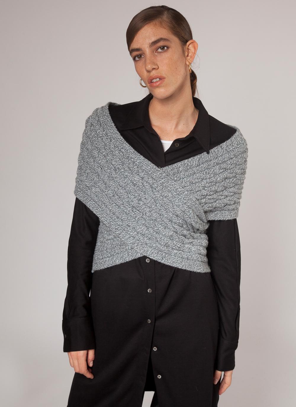 Our Fisherman Out of Ireland Aran cable wrap is a fusion of contemporary design with luxurious natural yarns. With side-button fastening and off-the-shoulder sleeves this wrap is both stylish and practical.