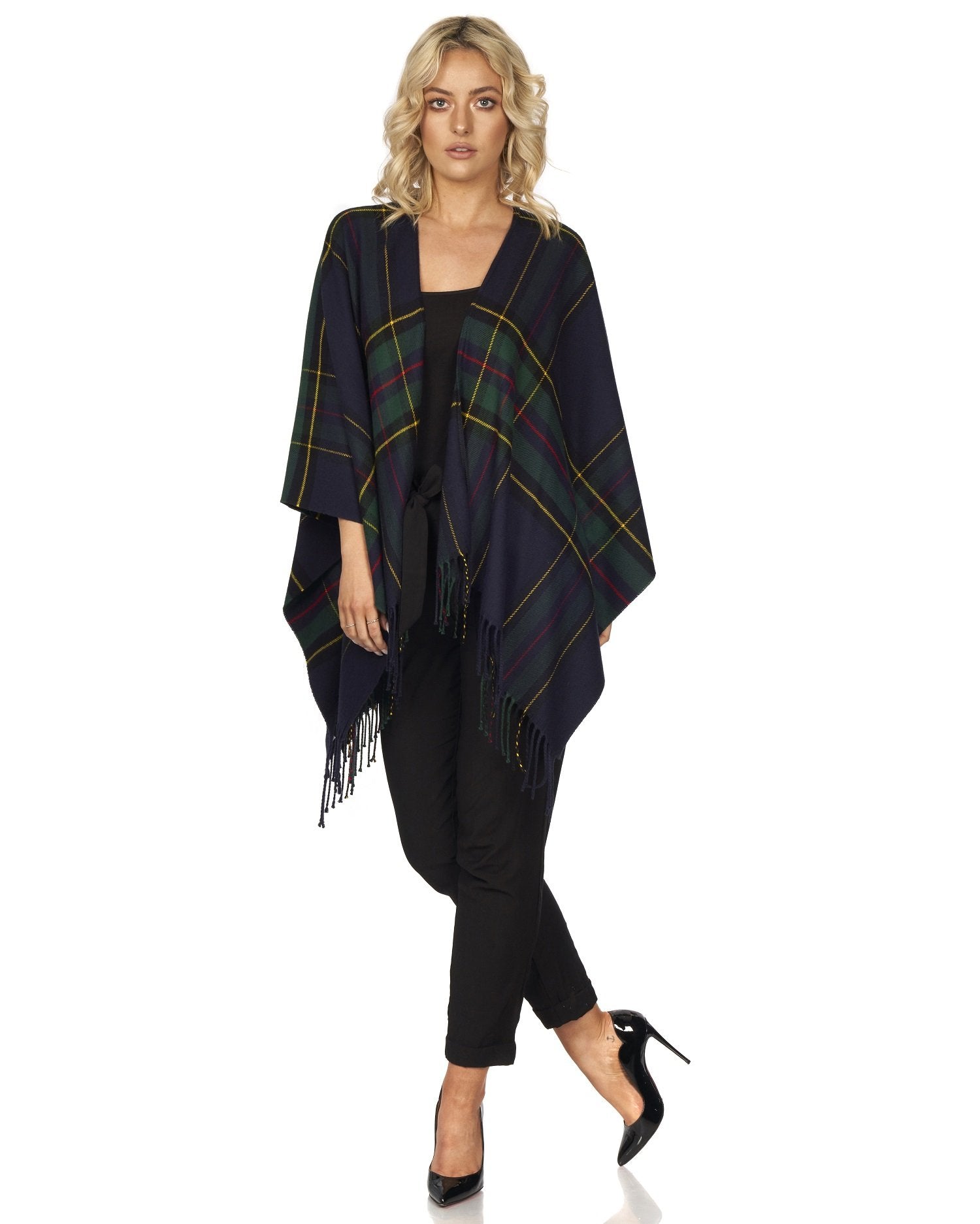 Wrap up in this easy to wear shawl (Ruana, Wrap) in a beautiful plaid design
