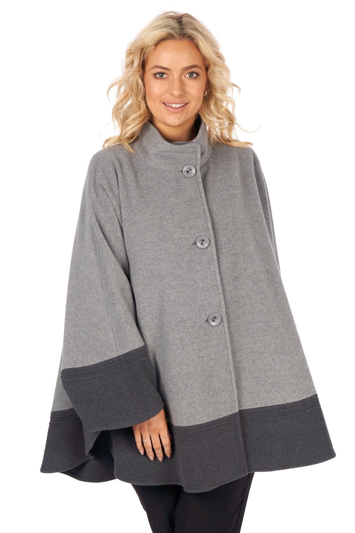 Women's Wool and Cashmere Cape in Two Tone Grey with Surpiqure Stitching.