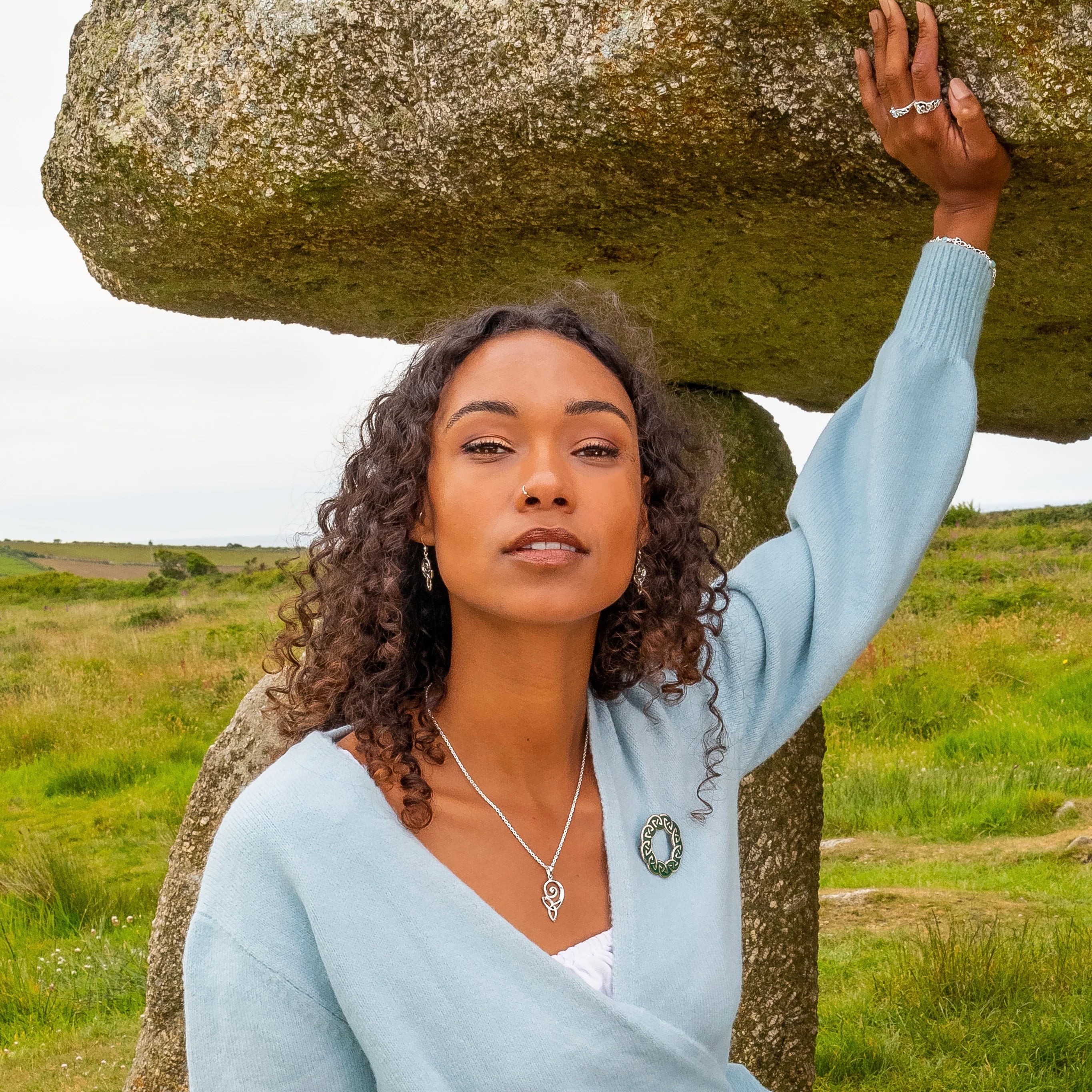 This expertly designed sterling silver pendant showcases the intricate Celtic Spiral alongside the timeless Trinity Knot. Presented in a chic branded gift box, it makes a sophisticated and meaningful gift option.
