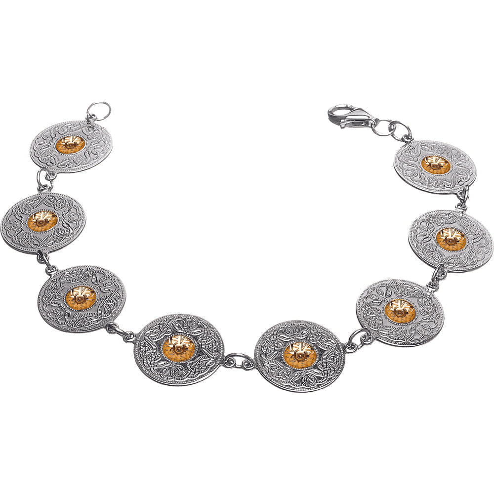 This Celtic warrior bracelet features 8 Sterling Silver shields each centered with 18K Gold Beads. It is part of our Ladies Celtic Warrior collection.