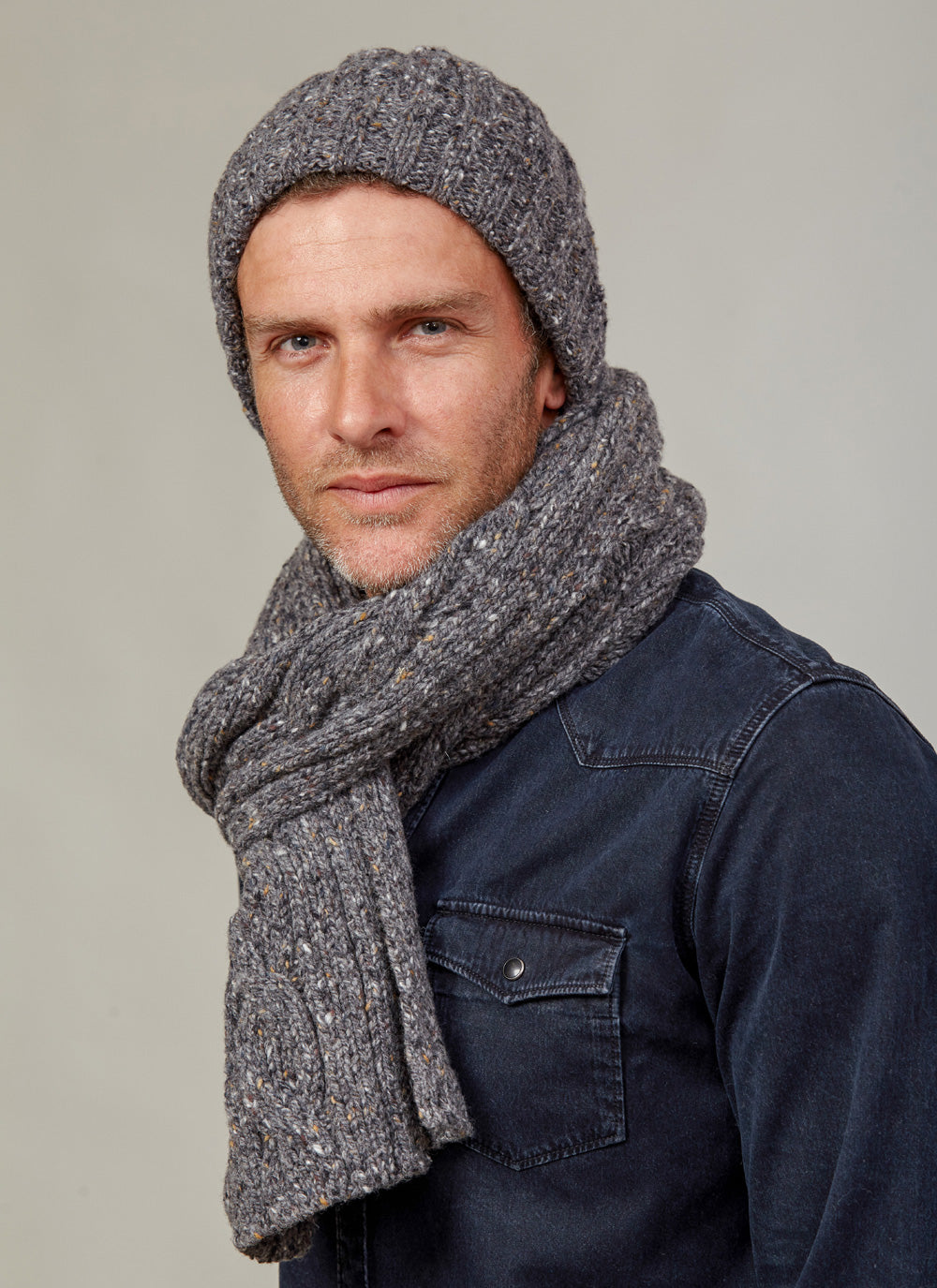 This cable knit beanie has been knit in Ireland from 100% Donegal fleck super soft merino wool. Made by Fisherman Out of Ireland this Donegal speckled yarn has been spun by Donegal Yarns in their factory in Kilcar, County Donegal. A thick and cozy timeless accessory set to keep you warm throughout the seasons.