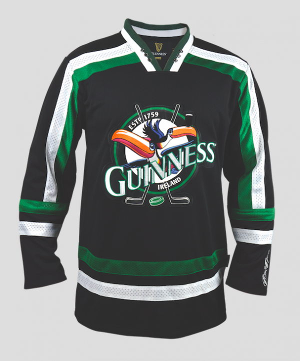 A new hockey jersey from Guinness featuring a Toucan on the front and also on the back. This is classic 1950's Guinness artwork by Gilroy.
